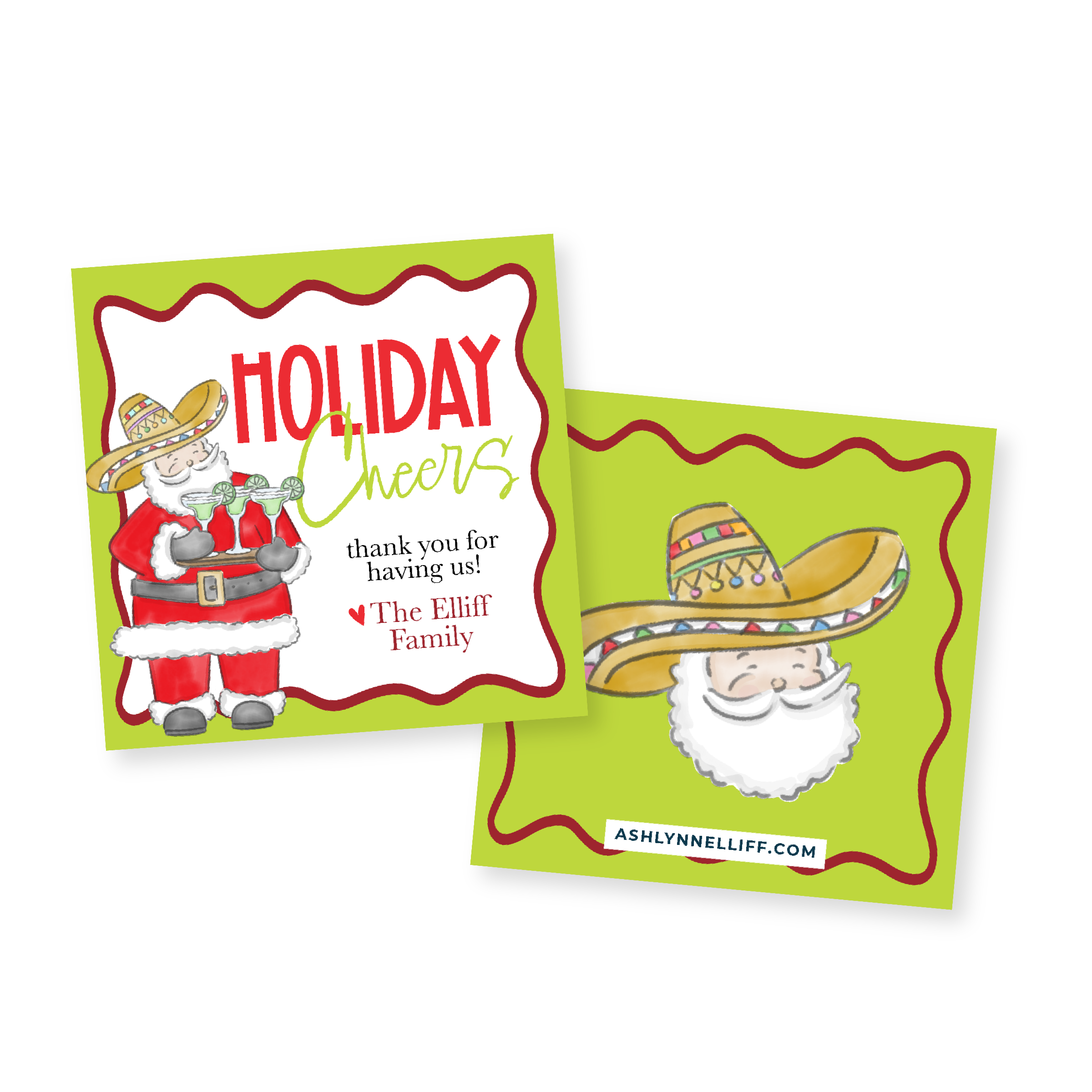Fiesta Holiday Cheers (Santas & Margaritas) Gift Tag